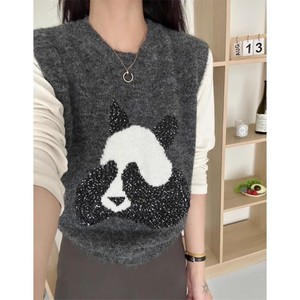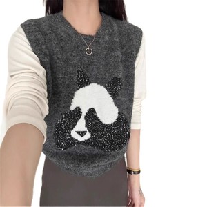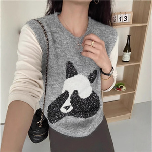 グレーのヘビーデューティスパンコールパンダニットベスト女性のための早春の新しいユニークなチョッキベストレイヤードハイエンドベスト