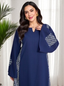 AB312 クロスボーダー グルバンフェスティバル アラビア ドバイ スプライシング ルーズ プラス サイズ ドレス イスラム教徒 パーティー ローブ