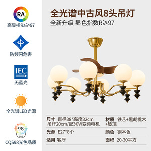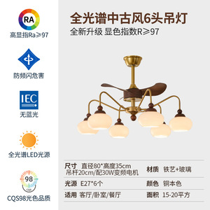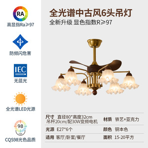 フレンチライト高級リビングルームシャンデリアクリエイティブアメリカンレトロハイエンドファンランプ新しいミッドセンチュリースタイルレストランランプ