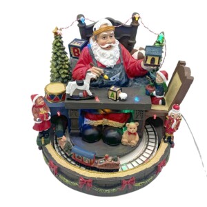 圣诞节装饰发光音乐树脂旋转小火车摆件圣诞老人礼物圣诞场景装饰