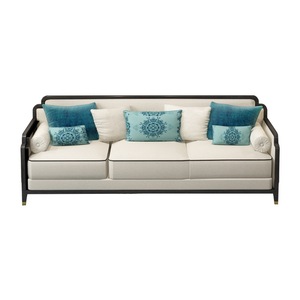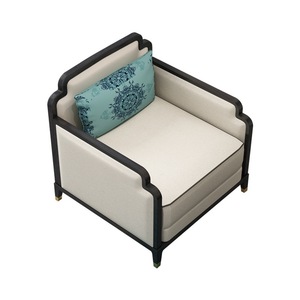 新中国式の木のソファーの組み合わせの客間の見本の間の軽い豪華な布芸のソファーのセットは家具の展示室を整えて商談します。