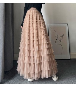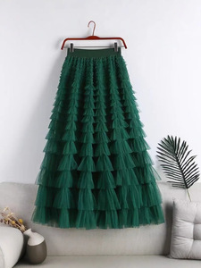 網糸ステッチケーキスカート2025春夏秋冬新作ミディアムスカートA字長スカート蓬蓬紗スカート