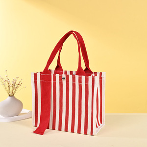 大容量自立学生シングル肩手提げ袋ストライプカラー印刷服ショッピングキャンバスバッグlogoカスタム卸売り