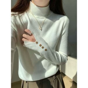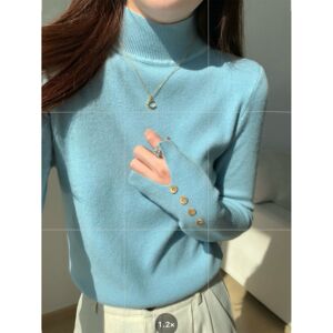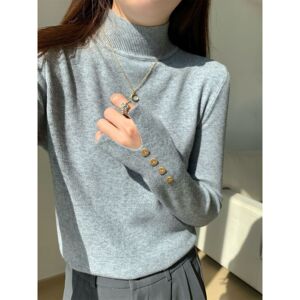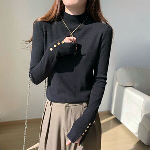 春と秋の薄い韓国版の気質の半高襟の純色のニットのセーターの底のシャツの上着の女性の春の新型
