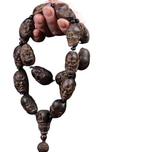 保真ベトナム黒棋楠沈香老料は十八羅漢沈水数珠手彫刻ペンダント車を持っている