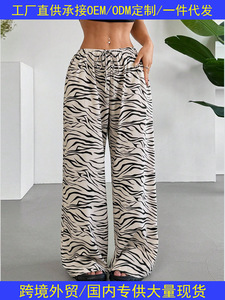 アマゾンは国境を越えて欧米のファッションのカジュアルなズボンの女性の新型のプリントの広い足のまっすぐなズボンを越えてゆったりとしています。