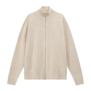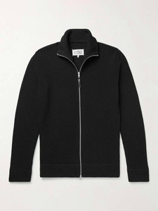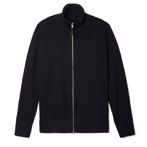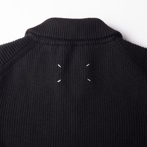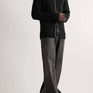 手縫い四角マーク/cleanfit黒高襟立襟ダブルファスナーメリヤスカーディガンセーターコート男