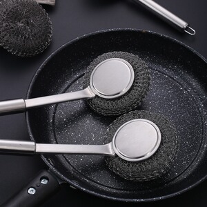 ステンレス製の鍋掃除用品、キッチン専用の鍋やボウルを掃除するためのブラシ、長柄のスチールワイヤーボール、汚れないハンドブラシ