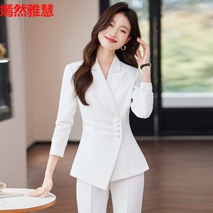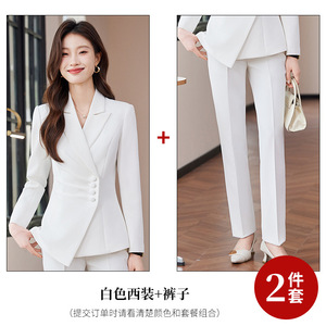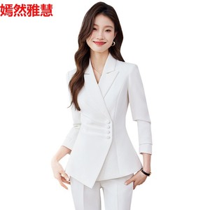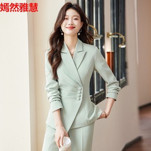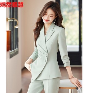 2025春ヨーロッパとアメリカの貿易グリーンスリムスーツスーツフロントデスクホワイトカラーワークウェアワイドレッグパンツスーツ