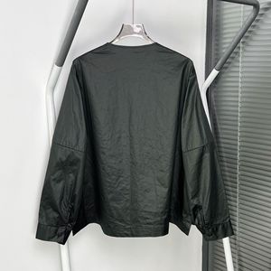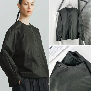 HOUSE25春夏 高阶设计师油蜡水洗褶皱府绸圆领衬衫落肩蝙蝠袖上衣