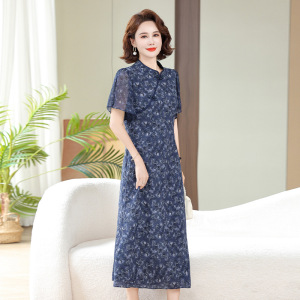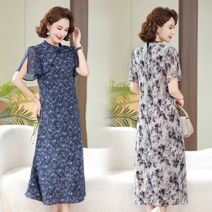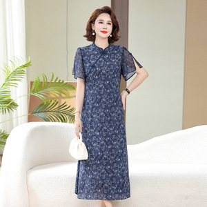 新作夏2025気質ファッションママ夏服ワンピース洋風中老婦人服半袖着痩せスカート