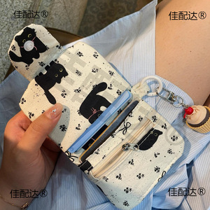 新品可爱い猫多层収纳カードケースストラップ可小銭入れズックイヤホンバッグウォークインバッグ证拠バッグ