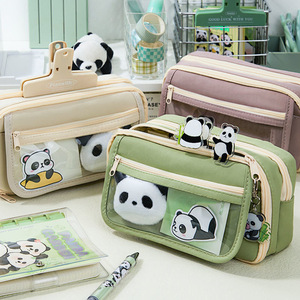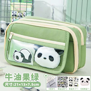 パンダ鉛筆バッグ大容量9層フリップカバー漫画多機能透明シンプル中学生文具筆箱
