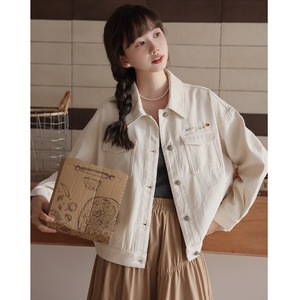 原宿港风宽松刺绣工装牛仔短外套女春新款感甜美减龄气质上衣