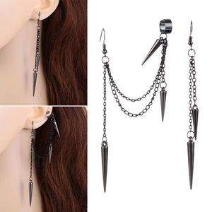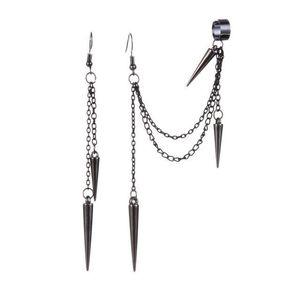 クロスボーダー新しいレトロなロングとショートのリベットイヤリング、イヤークリップ、ヨーロッパとアメリカのファッションゴシックパンクタッセルイヤリング、パーソナライズされたイヤリング