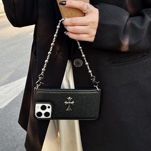 カーブしたライチ柄クロス+高級メタルチェーンv