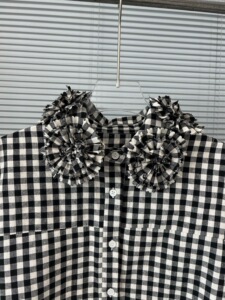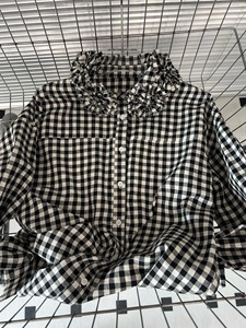 25早春の新型の重工の花は首のシャツのゆったりしたデザイン感の格子の立体の刺繍の上着を囲みます。
