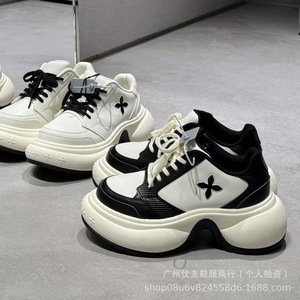 高バージョンのX-SMFK2025の春の新型の百合のさざ波の白黒の十字の花のスポーツのタイプのカジュアルなお父さんの靴