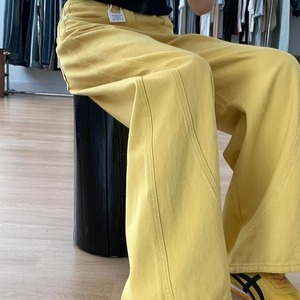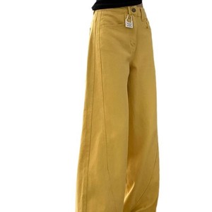 レトロなハイストリートイエローワイドレッグジーンズ女性用春と秋の新しいハイウエストルーズスリミング多用途ストレートレッグフロアレングスパンツトレンディ