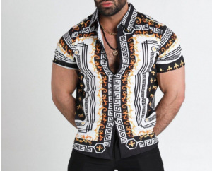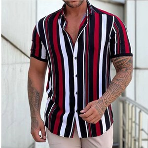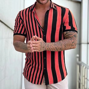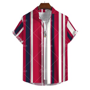 シンプルなメンズシャツ、クールなストライプ柄、3Dデジタルプリント、カジュアルなハワイアン半袖カーディガン、メーカー直販