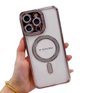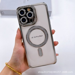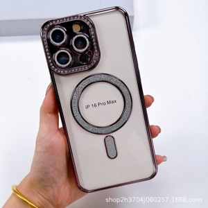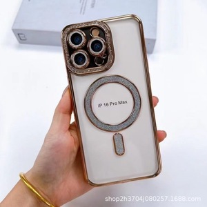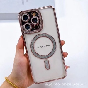 アップルiPhone16の新しいサイドドリル磁気吸引携帯電話15メッキフラッシュ粉14promax保護カバーを適用