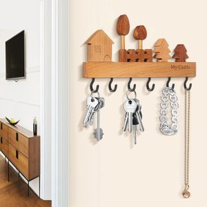 北欧無垢材壁キーフッククリエイティブな新しい壁掛け玄関ホールパンチフリーキー収納ラック玄関ドア