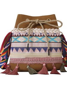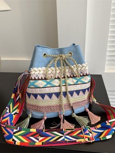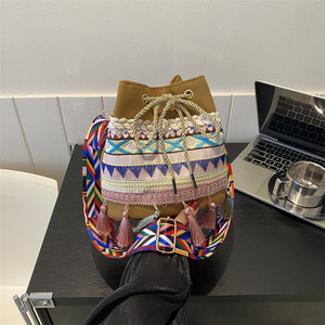 2025新型流行民族風流蘇バケツバッグファッションカジュアルショルダーバッグ女性トーテム復古斜めショルダーバッグ