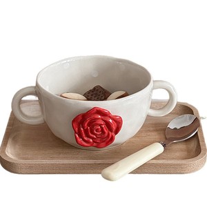 穆尼法式双耳碗立体红色浮雕玫瑰蔬菜沙拉碗早餐碗高级感精致餐具