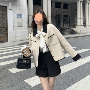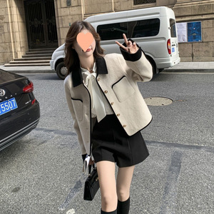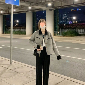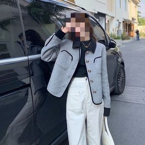 ショート丈のグレーのジャケット、女性用、秋冬、レトロ、高級感、個性的なデザイン、長袖トップス、通勤用