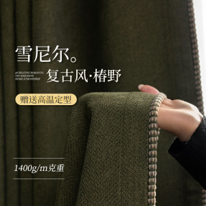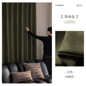 Chunye 中世スタイルフレンチレトログリーンシェニール 2025 新しいハイエンドリビングルームとベッドルーム完全遮光カーテン
