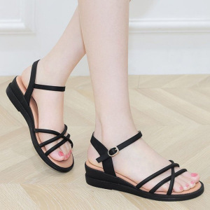 女性用サンダル、ウェッジヒール、白い足、2025年新作夏の女性用靴、スカート付き平底滑り止めサンダル、フェアリースタイル