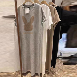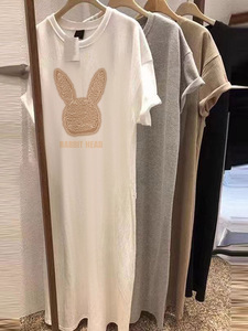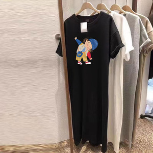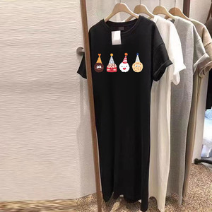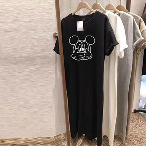 大码纯棉短袖连衣裙女夏季胖mm加肥宽松过膝T恤裙舒适半袖长款裙