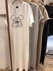纯棉浅灰色【米奇捂脸线条黑图案】