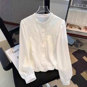 女性のためのファッショナブルな長袖シャツ 2025 春夏の新しいスタイルの痩身デザイン多用途年齢を減らすスプライシングシャツトップ