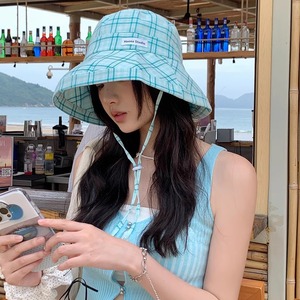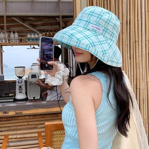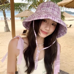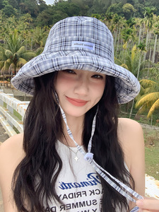 春と夏の新しいチェック柄旅行日焼け止め漁師帽子女性のための 2025 新しい小さな新鮮な顔が見える小さな日よけ帽子盆地帽子
