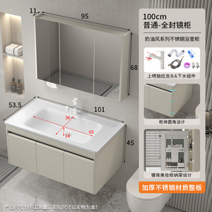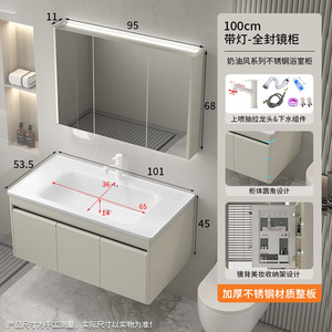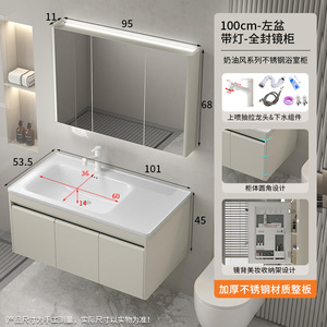 100CM左洗面器+インテリジェント完全密閉ミラーキャビネット