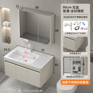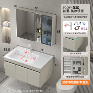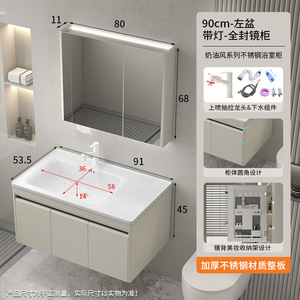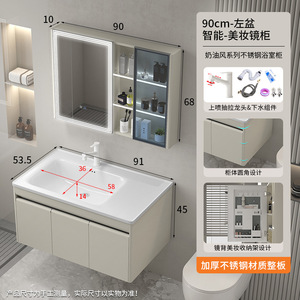 90CM左洗面器+インテリジェント全密閉ミラーキャビネット