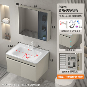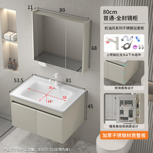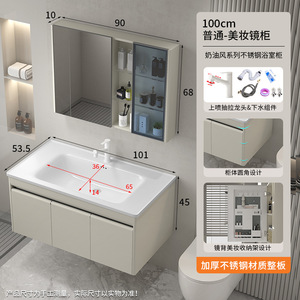 ステンレス鋼のバスルームキャビネット幅広カウンタートップセラミック一体型洗面台キャビネット組み合わせバスルーム洗面台洗面台