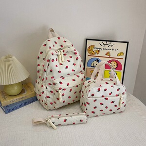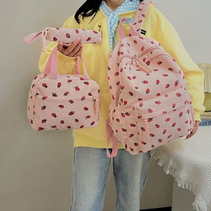 新しいクロスボーダースクールバッグ中学生女子大学生コーデュロイかわいいイチゴバックパックレジャー旅行女性バックパック