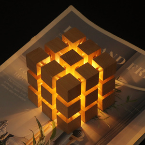 正方形木製 9 次数ルービックキューブラバーウッド無垢材デスクトップ装飾装飾品 USB ボタンスイッチ暖かい光の雰囲気