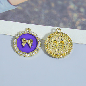 小香風愛桃心蝶ネクタイdiyアクセサリー合金ペンダントバッグ装飾ストラップ丸ブランドアクセサリー