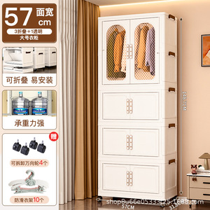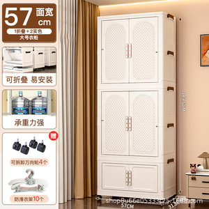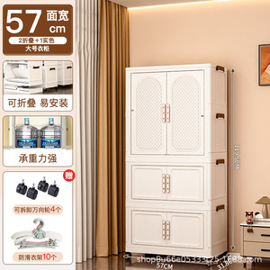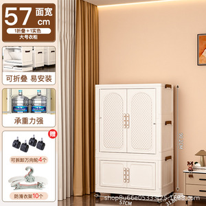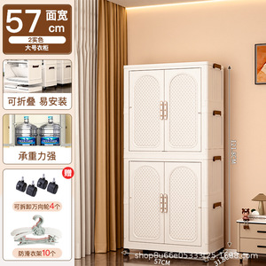 【57面ワイド】アーチ無地ワードローブ単層+1層折りたたみキャビネット