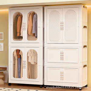 【77面ワイド】アーチ無地ワードローブ単層+1層折りたたみキャビネット