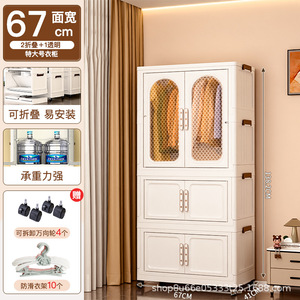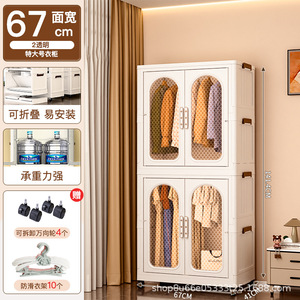 【67面ワイド】アーチ透明ワードローブ単層+1層折りたたみキャビネット