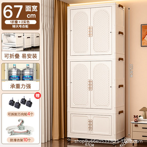 【67面ワイド】アーチ無地ワードローブ単層+1層折りたたみキャビネット