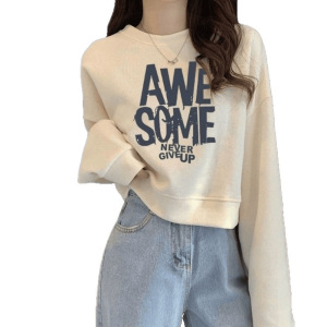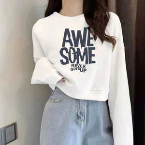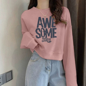 ゆったりスウェットシャツ春秋ショートレディース薄手2025ジャケット新作ハイウエスト小柄ラウンドネック長袖トップ