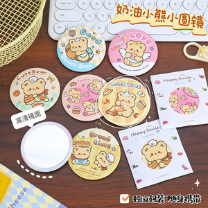 クリーム熊の鏡が可愛いです。携帯用ブリキの小さい丸い鏡です。