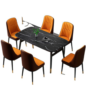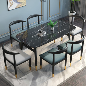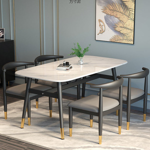 轻奢仿大理石餐桌椅组合家用现代简约新中式小户型吃饭桌子长方形