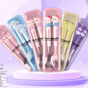 2025新型学生クロミハンドル携帯アニメ子供食器2点セットステンレス食器フォークスプーン