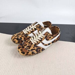 2025豹纹德训鞋低帮平底真皮女鞋通勤阿甘鞋休闲复古风耐磨舒适